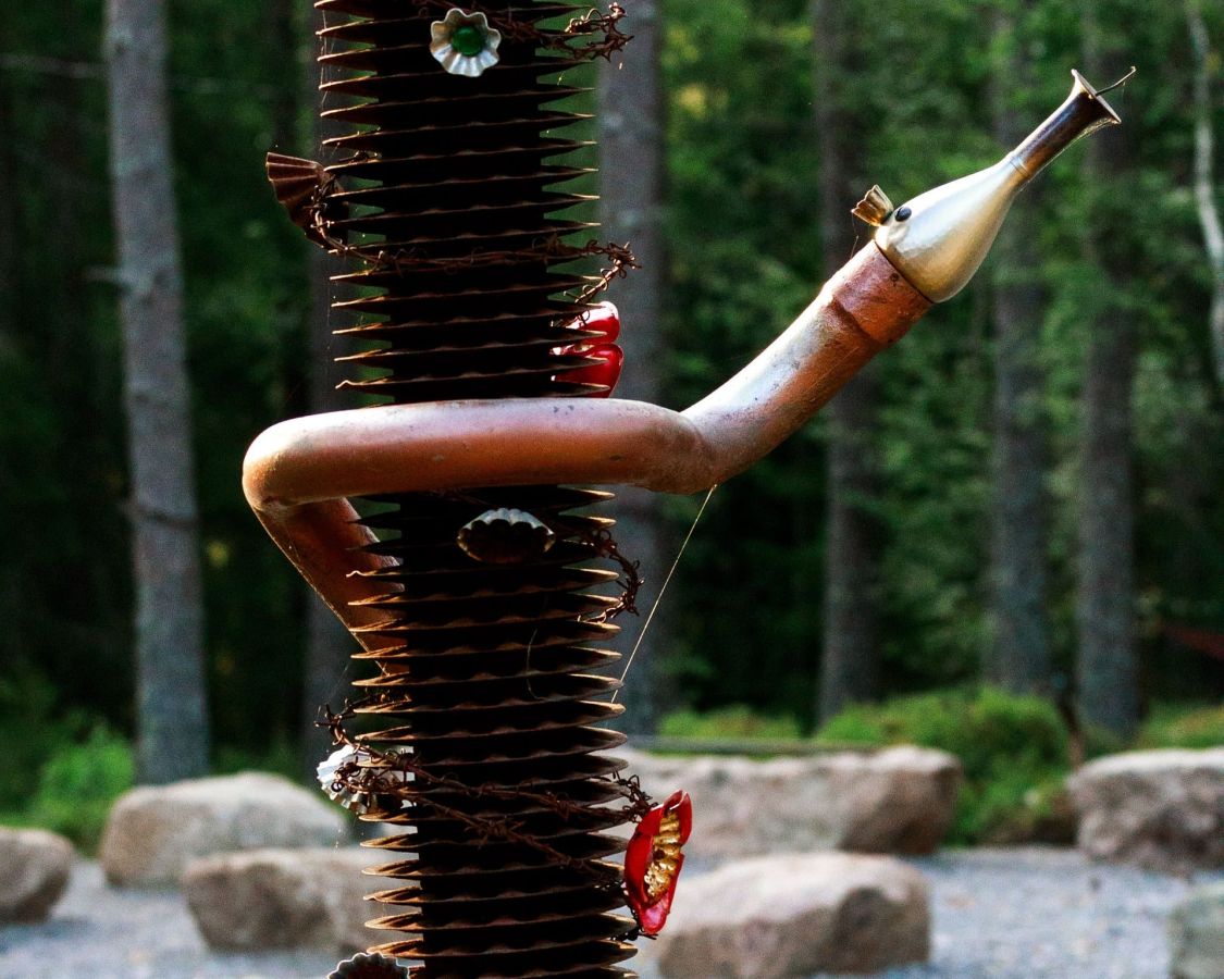 Teokset ovat kunnianosoitus kierrätykselle joka onkin yksi tärkeimmistä asioista taiteilija Sanna Saarisen arjessa. Polulta löydät lähes 50 erilaista taideteosta ja määrä kasvaa aina uuden teoksen valmistuttua.
